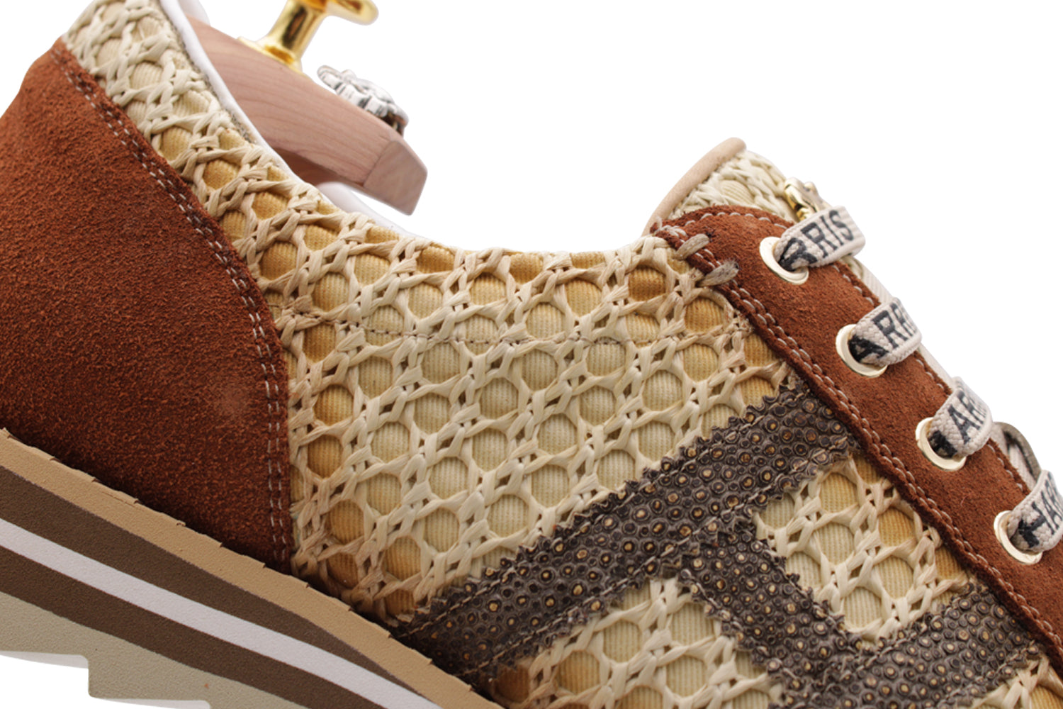 Leder- und Raffia -Turnschuhe