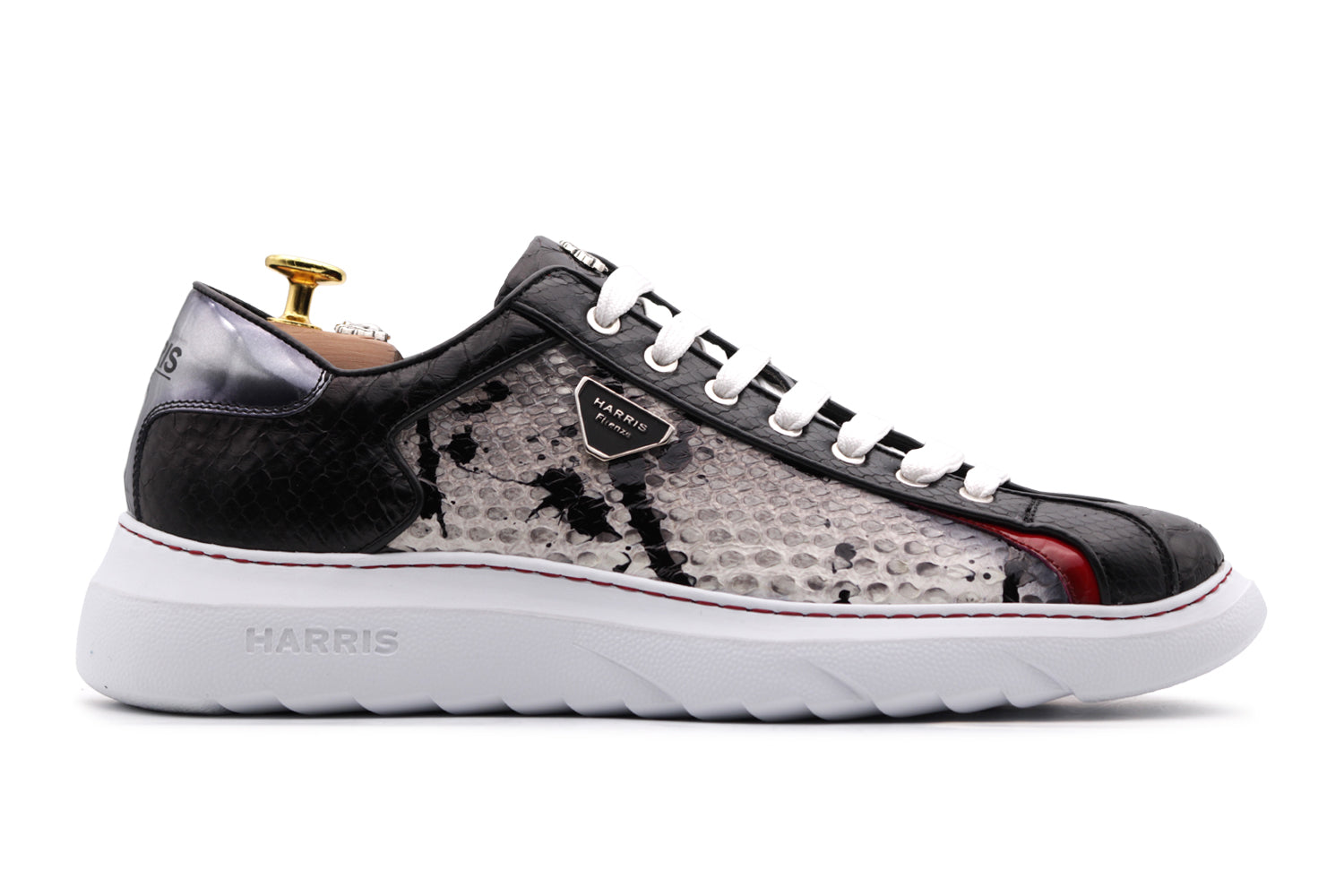 Made of fine python leather in shades of green and black, this sneaker is embellished with gold-finish accessories that embellish the design. To complete the model, the Innovazione cassette sole which ensures comfort and stability, enhancing a style that combines luxury, craftsmanship and modern style.