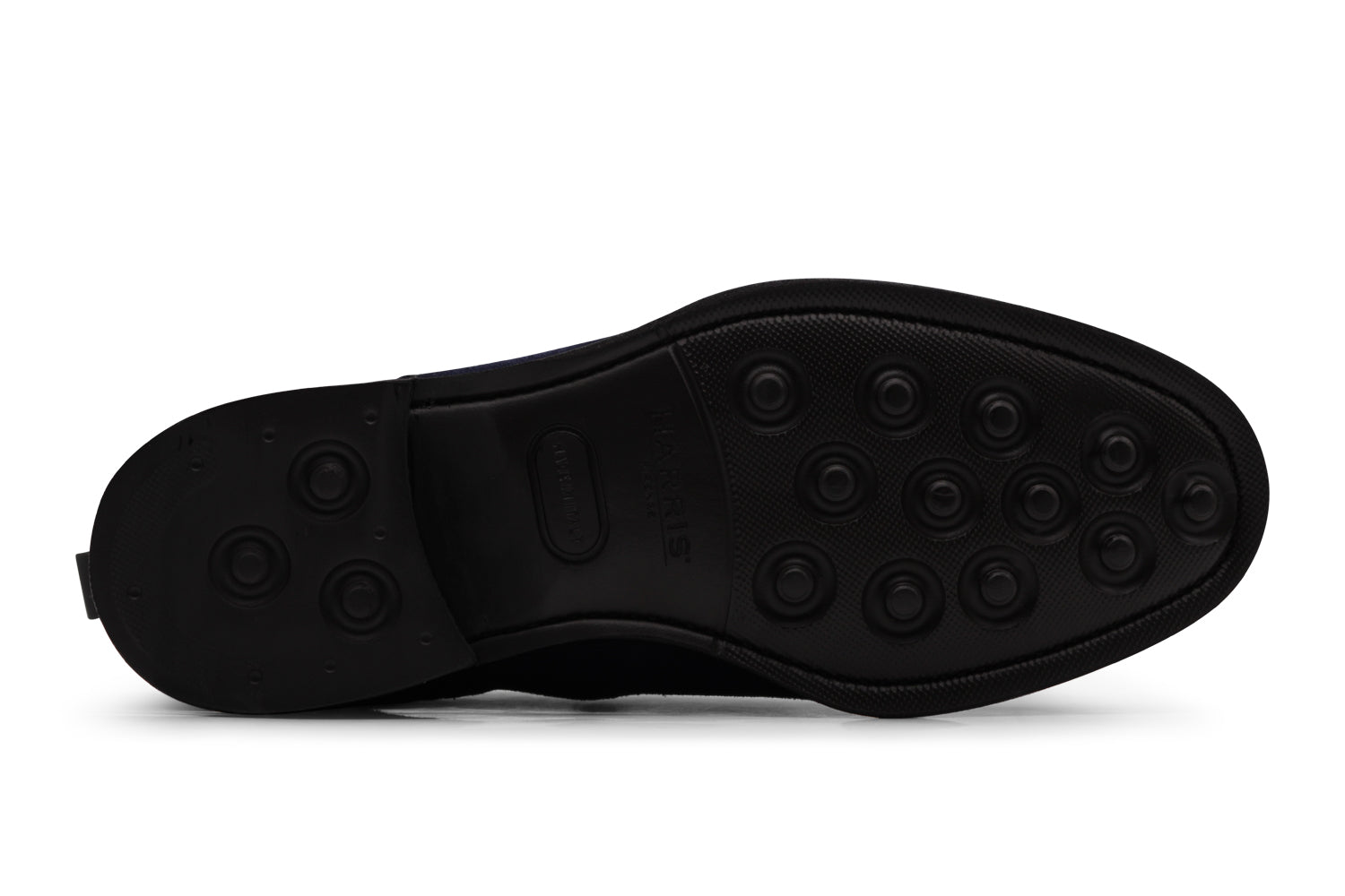 Botín de ante azul oscuro, adornado con pantallas hechas a mano. El elástico lateral realza su practicidad, mientras que la suela de goma Dainite y la fabricación Blake Rapid garantizan comodidad y durabilidad en el tiempo.