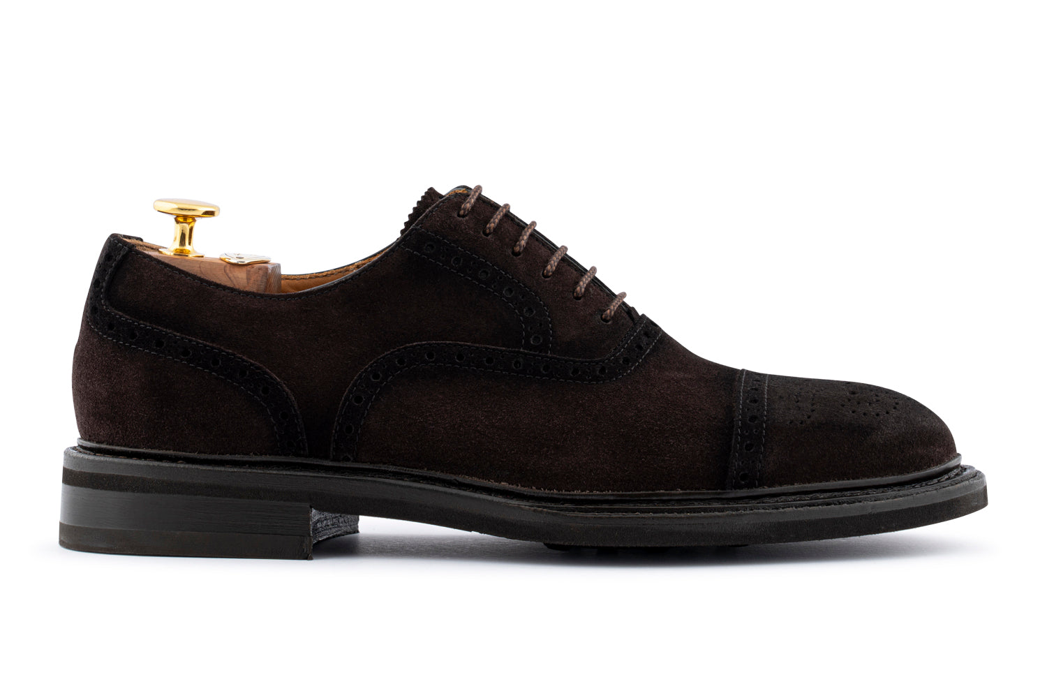 Questa francesina in pelle di vitello scamosciato si distingue per i raffinati dettagli Brogue e per le sfumature nere lavorate a mano che esaltano la profondità della tomaia. La costruzione Blake Rapid conferisce solidità e comfort, mentre la suola in gomma Dainite assicura stabilità e durata nel tempo.